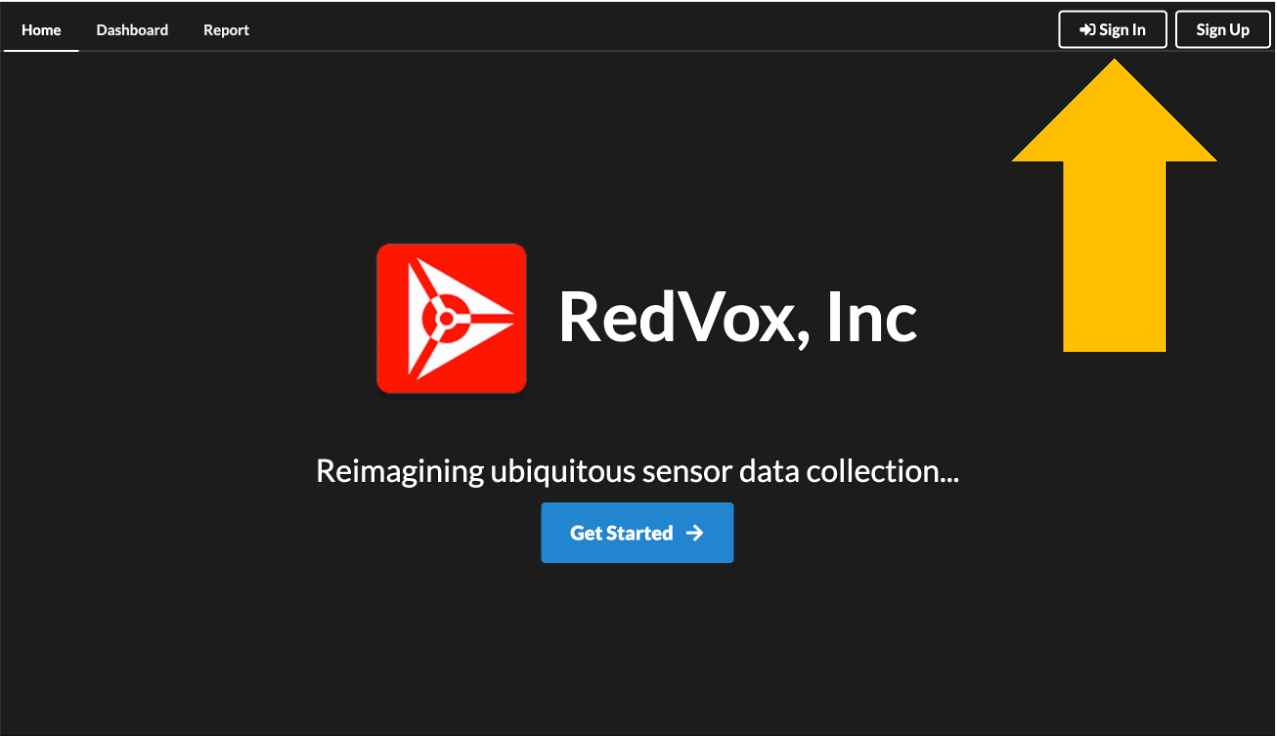 If you have not created an account, please do so by clicking the Get Started button in the middle or the Sign Up